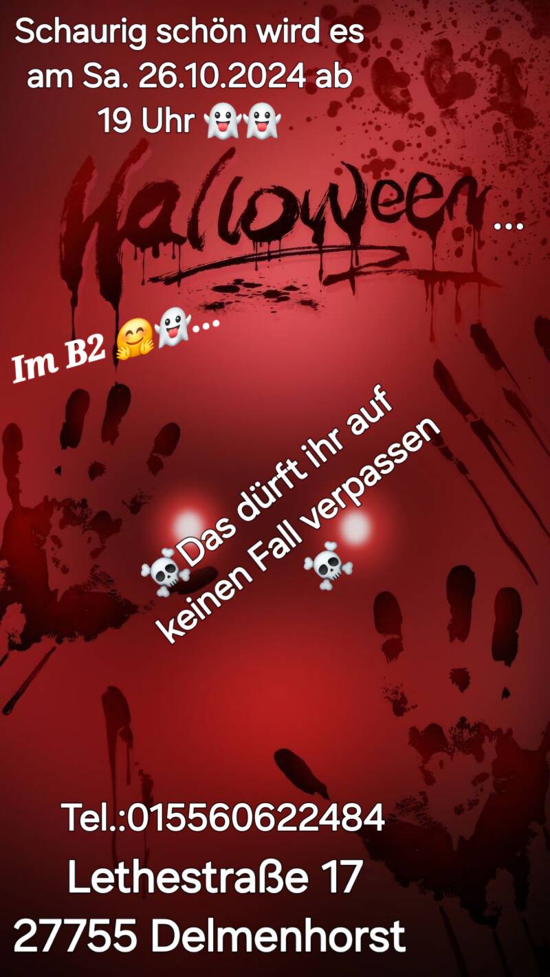 Am 26.10.2024 veranstalten wir eine Halloween 🎃 Party im B2,in der Lethestraße 17,27755 Delmenhorst!